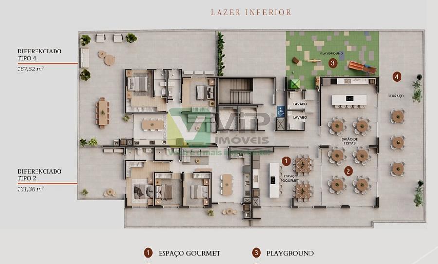 - Área de lazer inferior com 344,33 m²