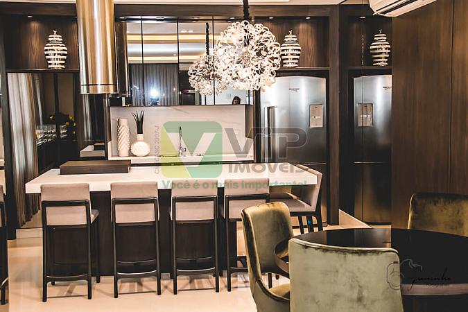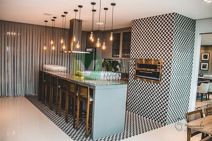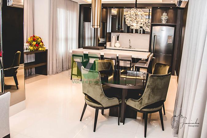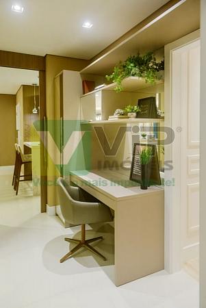 • Características Apartamento:03 Suítes, Sala de estar/jantar/home office, Lavabo, Cozinha, Área de serviço, Banheiro de serviço, Sacada com churrasqueira, Piso em porcelanato na área social/ laminado madeira nos dormitórios, Acabamento com detalhes em gesso, Persianas rolantes nos dormitórios, Tubulação para água quente, Medidor de água e gás individual, Esperas para ar condicionado Split, Tubulação para aspiração central, Esperas para sistema de automação;